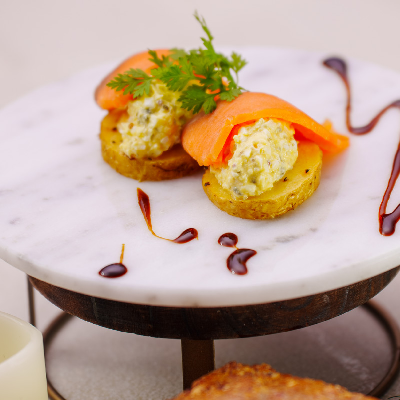 ・ローストポテト・玉子ムース・スモークサーモンのカナッペ